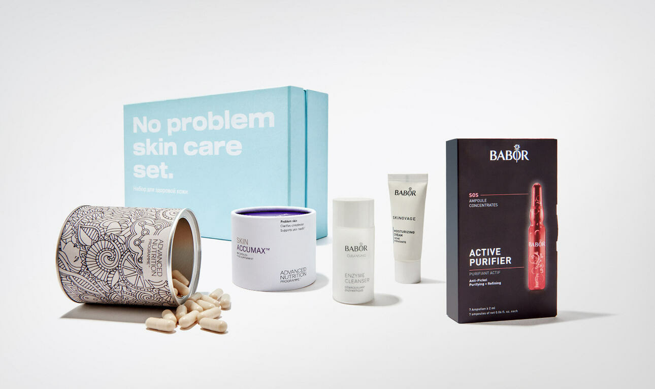 Весной у многих обостряется акне. В терапевтических целях нужно придерживаться определенных ограничений в питании (уменьшение сладкого и молочного в рационе улучшает состояние кожи), провести мануальную чистку кожи для избавления от комедонов, а также пройти сделать профессиональный пилинг — для снятия воспаления, снижения секреции сальных желез, сужения пор, выравнивания тона кожи. Но и домашнему уходу нужно уделить особое внимание. Бренды BABOR и Advanced Nutritio объединились и подготовили специальный сет для проблемной кожи, для тех, кто хочет этой весной комплексно подойти к решению проблемы акне «снаружи и изнутри».