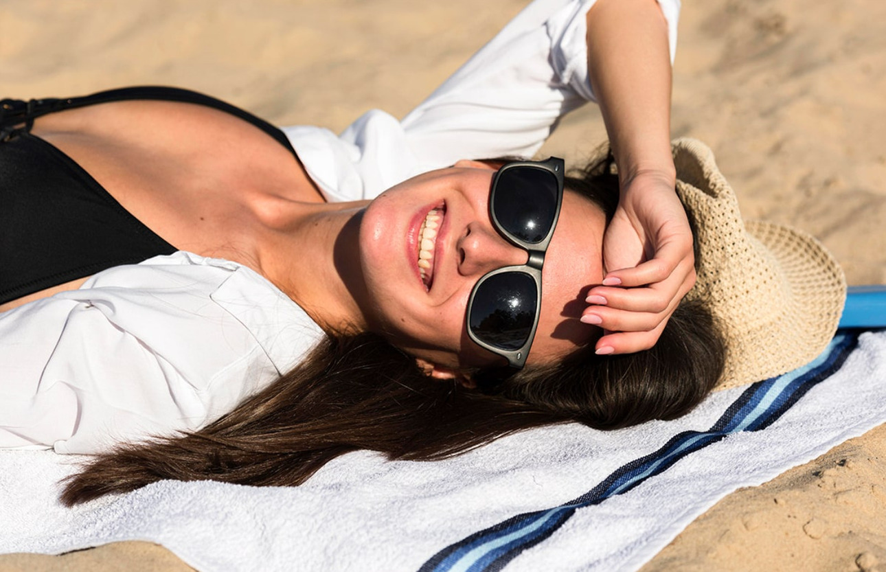 С возрастом кожа хуже переносит ультрафиолет: он провоцирует фотостарение, пигментацию и снижение тонуса. Поэтому обязательный пункт ухода — SPF не менее 50. Выбирайте легкие текстуры, которые не оставляют белого налета и хорошо впитываются. Не забывайте обновлять защиту каждые 2—3 часа, особенно после купания, это может быть солнцезащитный крем с антиоксидантами, увлажняющий SPF-спрей для тела. Избегайте масел для загара — они усиливают вредное воздействие солнца, а загорать до эффекта «шоколадки», как в нулевых, уже давно не модно.