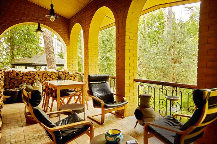 — Он уже был в доме, когда мы его купили. Роскошь… да, но дело это довольно хлопотное. (Улыбается.) Вообще камин довольно сложно вычищать. Иногда мы, конечно, топим его зимой, но я все-таки предпочитаю сидеть на воздухе, на веранде. Там тоже есть печка, которая хорошо греет даже при морозе. Сидишь, закутавшись в теплый плед, с бокалом вина, любуешься природой — красота!