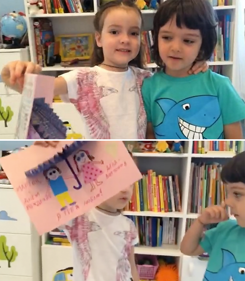 Счастливый отец Филипп Киркоров поделился со своими поклонниками трогательным видео, на котором можно посмотреть, как старшая сестренка именинника Алла-Виктория поздравляет его. Она прочла очень трогательное стихотворение: «Мы с тобой сестра и брат. Папы нашего кровинки. И про нас все говорят: две родные половинки. День рождения у тебя. Вот, мой друг сердечный. И из всех других ребят лучше ты конечно…» (здесь и далее орфография и пунктуация авторов сохранены, — прим. WomanHit.ru). Также малышка вручила Мартину открытку, на которой нарисовала себя и брата под большим зонтом, который укрывает не только от непогоды, но и от невзгод и жизненных неприятностей.