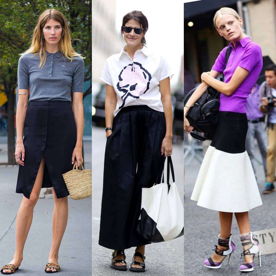 Тут главная задача — грамотно соединить, казалось бы, несочетаемые вещи либо создать интересный многослойный образ. Вариант для любительниц экспериментировать, точно не для скромниц или почитательниц строгого классического стиля. «Это может быть шелковая юбка в пол, хлопковая юбка в бохо-стиле. Может быть и многослойность, когда на одно поло надевается другое, либо поло с коротким рукавом сочетается с лонгсливом. Поло можно пробовать надевать и под различные платься. Получится этакая „абра-кадабра“, которая, вроде бы и не сочетается друг с другом, но в целом смотрится здорово», — рекомендует стилист.