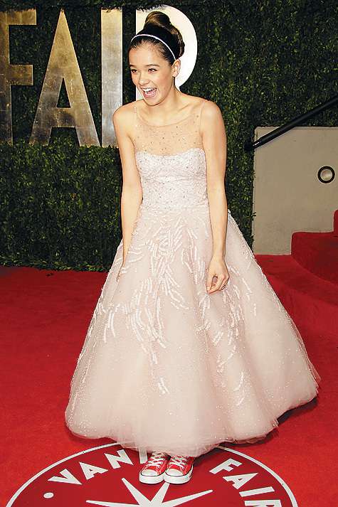 Хэйли Стейнфилд — 14-летняя звездочка, номинировавшаяся на «Оскар» в категории «Лучшая женская роль второго плана» за фильм «Железная хватка», — на церемонии была впервые. Поэтому весьма искренне выражала все свои эмоции. На красной ковровой дорожке, предшествовавшей церемонии, юная актриса призналась, что ей очень холодно. Накануне кинопремии в Лос-Анджелесе два дня шел дождь. В день церемонии погода изменилась: было солнечно и безветренно, но температура не поднималась выше плюс десяти. Поэтому все актрисы в открытых платьях были покрыты мурашками, включая Хэйли, которая не постеснялась в этом признаться. Не смущалась Стейнфилд и после церемонии. Устав ходить на каблуках, подающая надежды кинозвезда пришла на афтепати-вечеринку Vanity Fair в том же платье, но — в кедах. «Так удобнее», — пояснила актриса.