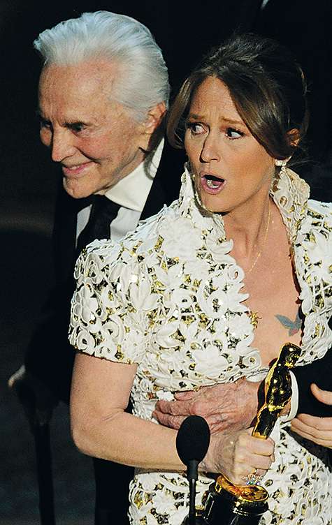 Мелисса Лео, получая «Оскар» за лучшую женскую роль второго плана в фильме «Боец», позволила себе сказать бранное слово, что вызвало бурю положительных эмоций у ведущих и зрителей, которые посчитали этот пассаж одним из самых забавных во всем шоу. Но на этом провокации актрисы не закончились. Получив награду из рук легендарного Кирка Дугласа, 50-летняя Мелисса игриво поинтересовалась у 94-летнего Кирка, чем он занят сегодня вечером. Как истинный дамский угодник, Дуглас приобнял опешившую Лео за талию и прошептал ей на ухо что-то непристойное. Лауреатка покраснела и в уважении пред возрастом, заслугами и чувством юмора мэтра преклонила колено.