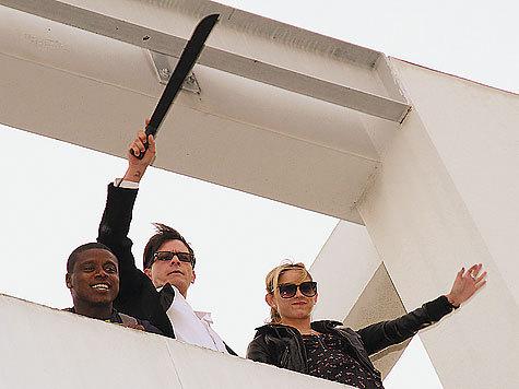 Экстравагантным способом отметил Чарли Шин свое увольнение из сериала «Два с половиной человека». В компании близких друзей актер взобрался на крышу офисного здания и, размахивая неизвестно откуда взятым мачете, кричал: «Я свободен!»