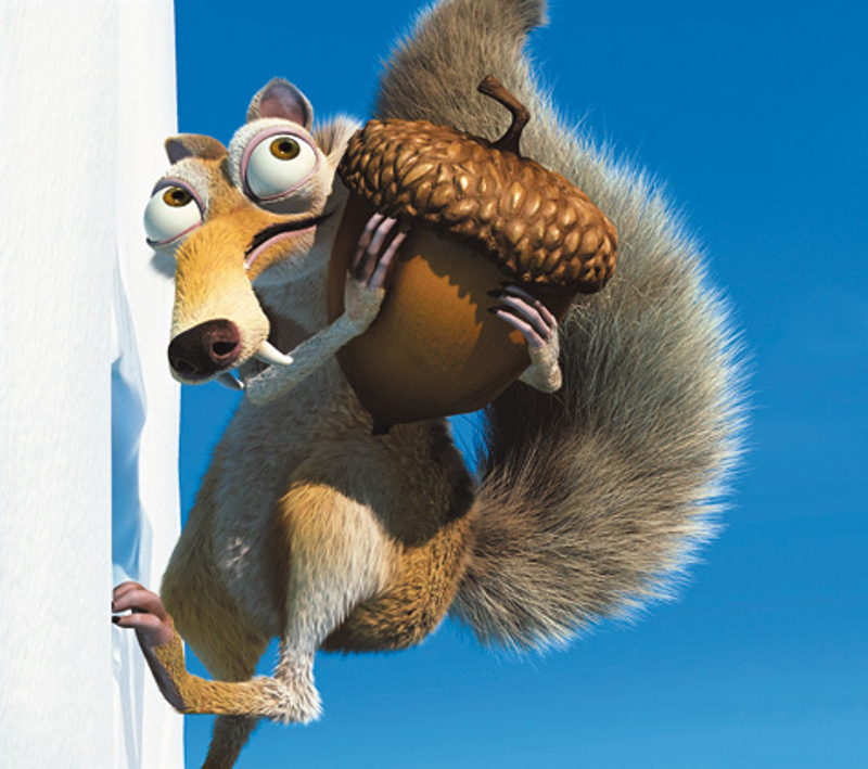 ■ Крысобел (самец саблезубой белки) Скрэт изначально был удостоен лишь одной-единственной сцены в самом начале мультфильма, где он втыкает найденный желудь в ледник и тем самым раскалывает его. Дело в том, что снег в картине появляется лишь на