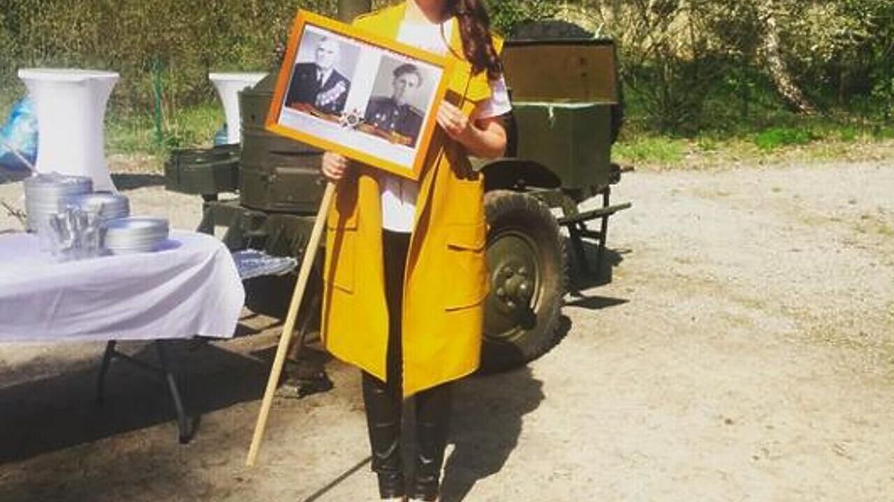 Телеведущая прошлась по Красной Площади в Бессмертном Полку с фотографиями деда и прадеда.