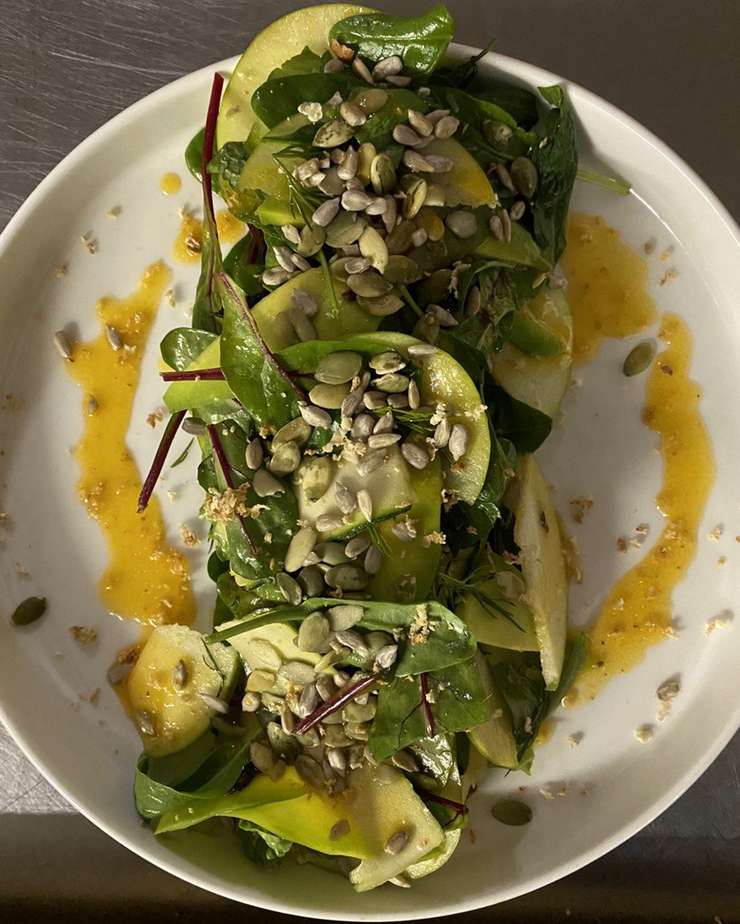 Потратив не больше десяти минут, вы получите яркое блюдо с интересными акцентами, которое прекрасно впишется в здоровый рацион и будет отлично смотреться на обеде с друзьями.