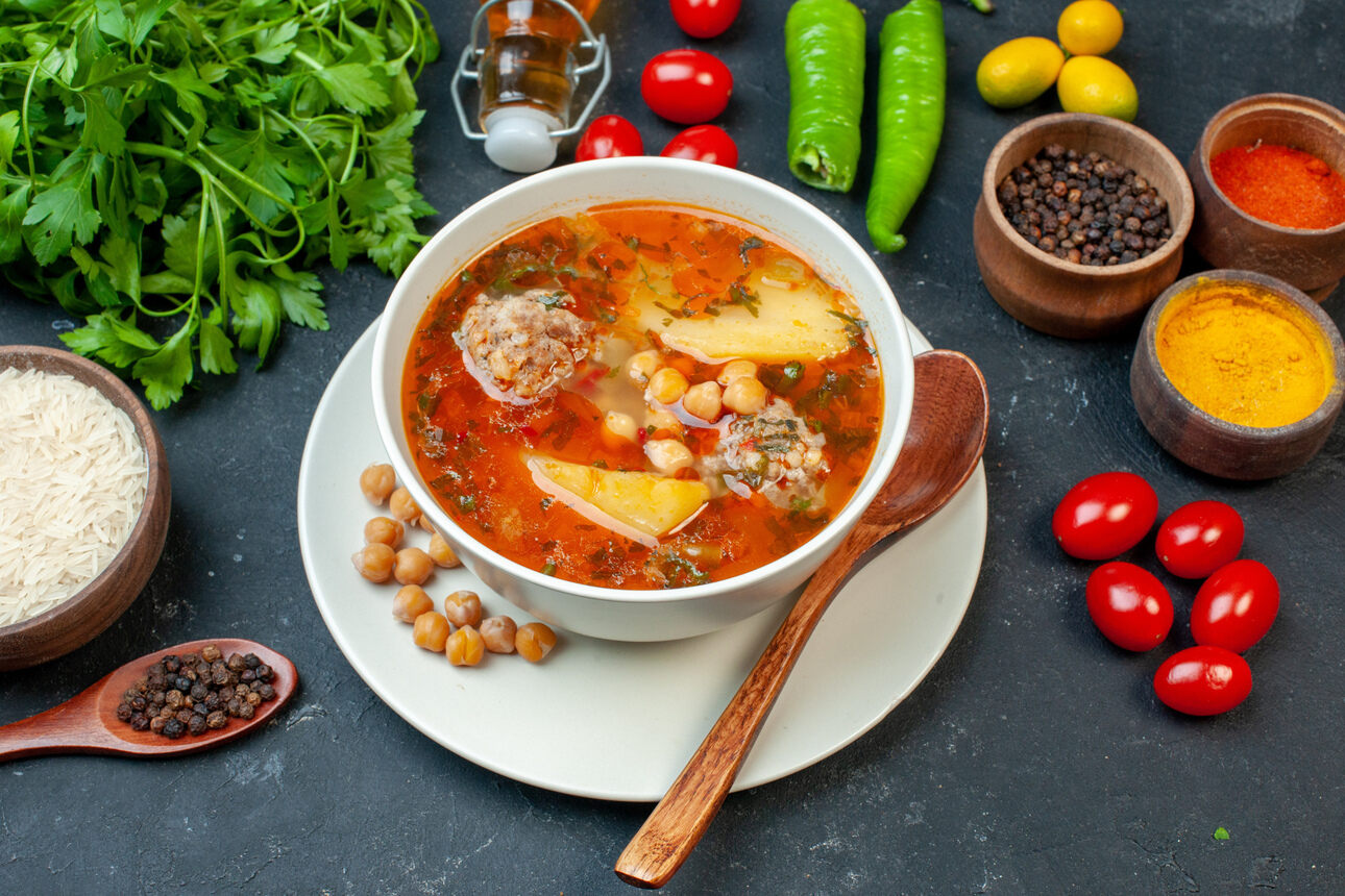 Называют так, потому что в приготовлении используют говяжий фарш и помидоры. А еще, его, как правило, подают с хлебом. Такой наваристый суп понравится и детям, и взрослым.