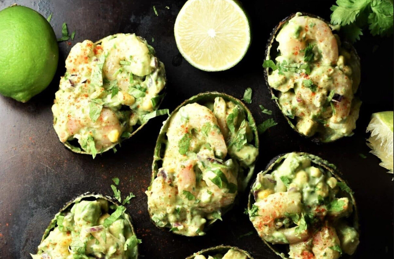 Авокадо с креветками и зеленым соусом