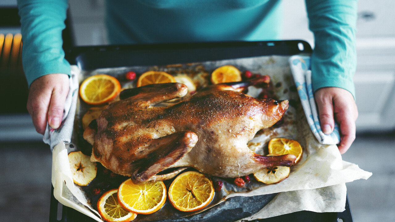 Гусь жареный с капустой