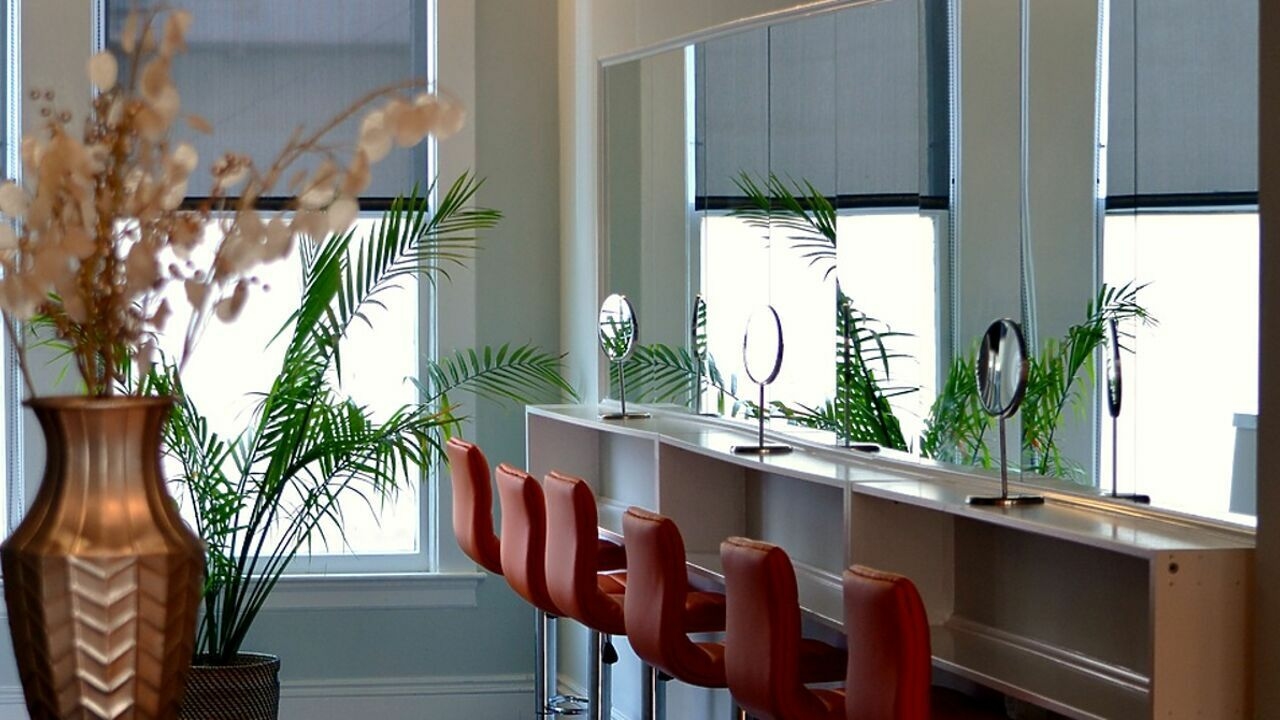 Организуйте туалетный столик на той же стороне, что и кровать. Еще один лайфхак: поместите зеркало на дверь шкафа с внутренней стороны.