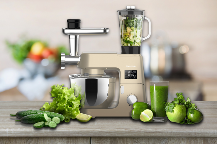 *Для расширения функционала кухонной машины Starwind SKM8193 насадка-блендер Starwind SKM-B1 и насадка-мясорубка Starwind SKM-M1 приобретаются отдельно.