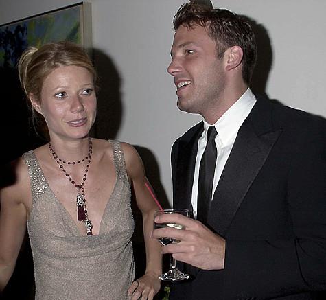 Еще один громкий роман актрисы — с Беном Аффлеком, известным в Голливуде сердцеедом, «любимцем многих женщин и некоторых мужчин», как шутит он сам. Они познакомились в 1997 году на одной из светских вечеринок. На первое свидание Гвинет пришла в сопровождении своей мамы, актрисы Блайт Дэннер, давней знакомой отца Аффлека. Бен почувствовал себя как на экзамене. Но одобрение «экзаменатора» получил, и пара начала встречаться. Сначала актер пребывал в состоянии эйфории: такая замечательная девушка ему досталась! Когда в одном из интервью его попросили оценить отношения с Гвинет по десятибалльной шкале, он воскликнул: «Одиннадцать баллов!» Казалось, дело шло к свадьбе, но… Как сообщали западные СМИ, отношения распались из-за нового романа актрисы с Джозефом Файнсом, ее партнером по фильму «Влюбленный Шекспир». Гвинет отказалась от дублерши в эротических сценах и так восторженно отзывалась о коллеге, что вызвала в душе Бена настоящую бурю. Как выяснилось, ревновал он не без оснований. Последней каплей стали фотографии, на которых Пэлтроу и Файнс целовались вне съемочной площадки. Гвинет пыталась убедить Бена, что это была генеральная репетиция, но он ей не поверил. «Наша любовь, как поезд, потерпела крушение», — с горечью констатировал Бен. «У нас оказались разные системы ценностей», — резюмировала актриса.