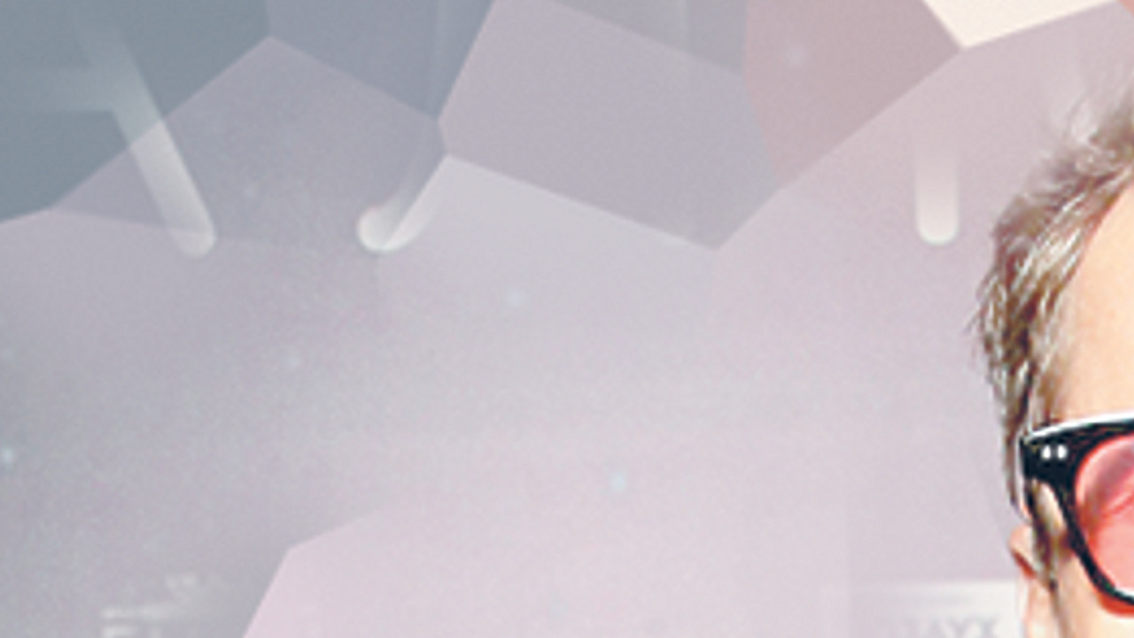 Кожаный (даже хуже — наполовину кожаный) пиджак и байкерские штаны как бы намекают на адскую брутальность, но очки успокаивают: не бойтесь, дети, у меня просто раздвоение личности.