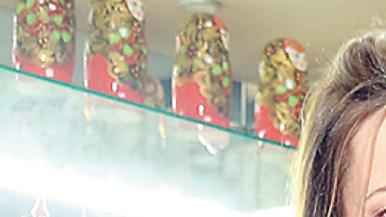 Леопард, ремешки, заклепки, бахрома, рваные коленки, полупрозрачная блуза… Очевидно, девушка надела все лучшее сразу. На фоне матрешек это выглядит совсем юмористически.
