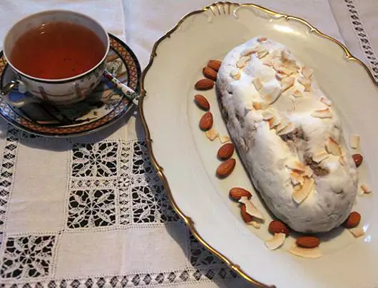 В принципе, форма не обязательна, можно свернуть края один на другой, плотно прижать и выложить на противень на фольгу или бумагу для выпекания, так он будет больше похож на штоллен. Внутрь можно добавить еще орехов и размоченных сухофруктов.
