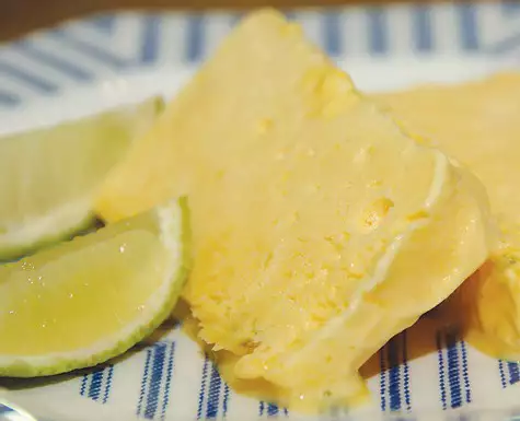 Процесс приготовления: взбить желтки с сахарной пудрой, добавить мелко натертую цедру лимона и лайма, сок половины лимона и половины лайма. Поставить все на водяную баню и, непрерывно взбивая венчиком, довести массу до загустения. Взбить сливки в густую пену. Соединить желтково-сахарную массу со сливками. Взбить белки со щепоткой соли, ввести в получившуюся массу и осторожно вымешать. Выложить длинную высокую форму пленкой и наполнить получившейся массой. Поставить минимум на 4 часа в морозилку. Каждый час перемешивать, чтобы замерзло равномерно.