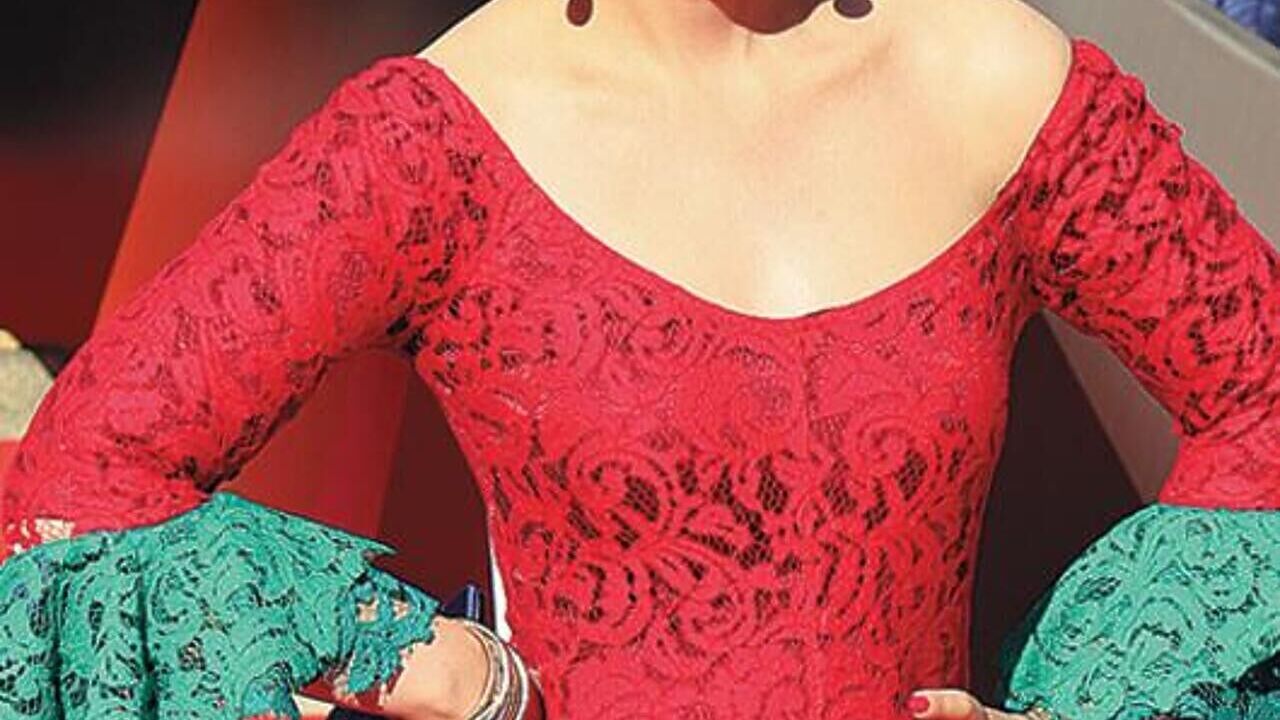 Анастасия Бойченко: Вероятно, этот гибрид цыганки, украинской молодухи и маркизы де Помпадур приснился стилисту в самом тяжелом сне. Разноцветные ногти довершают ночной кошмар.
