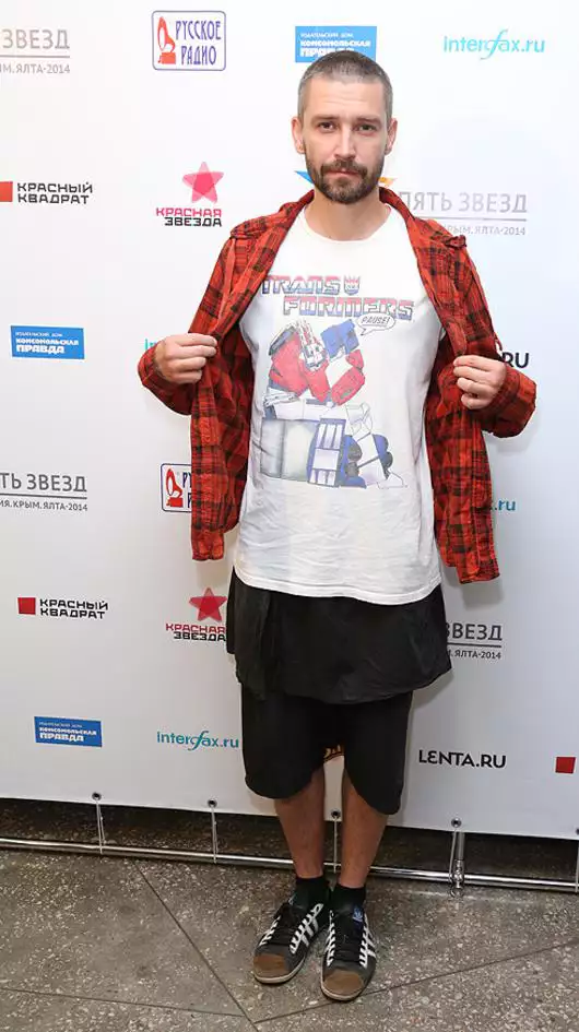 Илья Легостаев: Да-да, мы снова оценили и принт на майке, и рубашку лесоруба, и кроссовки, к которым так неравнодушен г-н Кристовский. Есть, правда, одна скверная новость. Шорты музыканту совсем не идут.