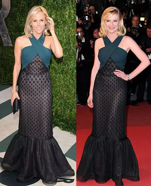 Самым важным моментом для участников любого светского мероприятия является наряд. Дизайнер, фасон, расцветка — необходимо учесть все детали, чтобы потом спокойно блистать перед объективами фотокамер. Впрочем, иногда «то самое платье» приходится по вкусу сразу нескольким звездам. И вот тут начинается настоящая битва. Модная. На этот раз на поле ринга попала актриса Кирстен Данст и американский дизайнер Тори Берч. Обе красотки для своих светских выходов выбрали платья Rodarte с контрастным верхом и «русалочьим» хвостом. Кирстен продемонстрировала его на премьере «Меланхолии» в Каннах, а Тори появилась в том же наряде на вечеринке Vanity Fair. Ну, а кому это платье идет больше? Выбираем!
