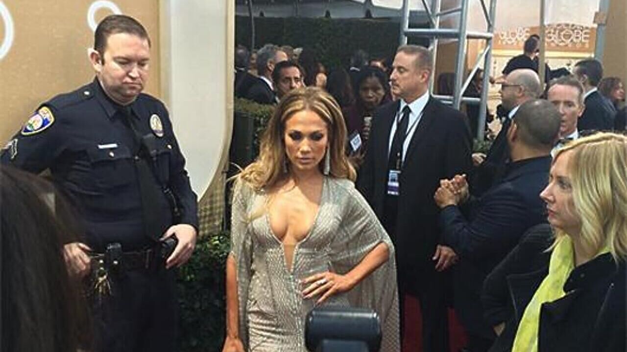 Откровенный наряд Дженнифер Лопес как всегда привлек к себе всеобщее внимание. И даже охранник за кулисами красной дорожки исподтишка разглядывал прелести звезды. В отличие от Джереми Реннера, бывшего более прямолинейным. Во время вручения премии за «Лучший драматический мини-сериал» актер, заглядывая в декольте платье Лопес от Zuhair Murad, задумчиво произнес: «А у тебя тоже есть глобусы… М-м-м!». Дженнифер сначала опешила, но потом тихонечно засмеялась. Зрительному залу шутка Джереми также пришлась по душе.
