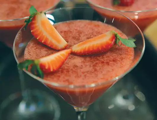 Жара в самом разгаре. Самое время порадовать себя оригинальным и освежающим десертом. Для этого Вам потребуется: 800 г клубники, 1 стручок ванили, 4 пластины желатина (16 г), 200 мл шампанского и 2 ст. ложки сахарной пудры.