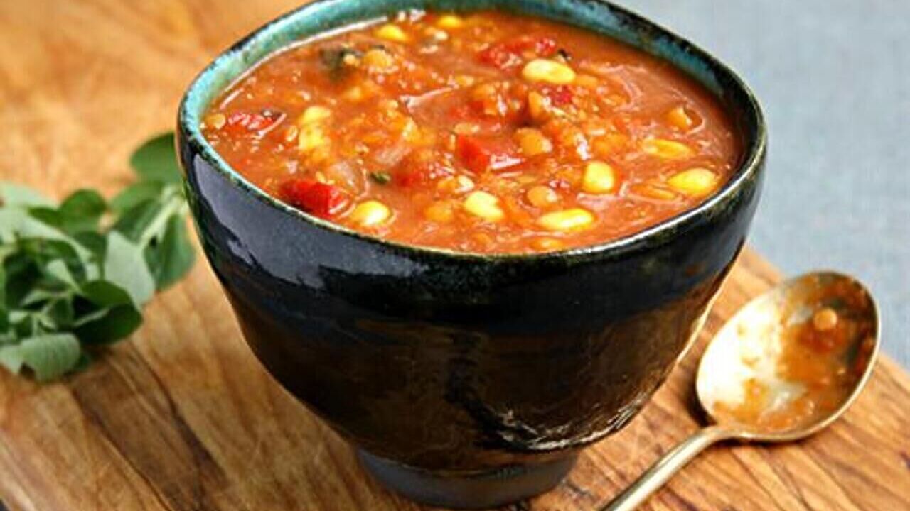 Ингредиенты: 3 помидора, 1 стакан красной чечевицы, 1 лук-порей, 50 г сметаны, 1 зубчик чеснока, горсть листьев кинзы, 1−1 ½ л овощного или куриного бульона, 3 ст. ложки оливкового масла, 1 ч. ложка сахара мусковадо, ½ ч. ложки зерен кардамона, ½ ч. ложки тмина, ½ ч. ложки куркумы, ¼ ч. ложки смеси хариса, щепотка шафрана, щепотка морской соли.