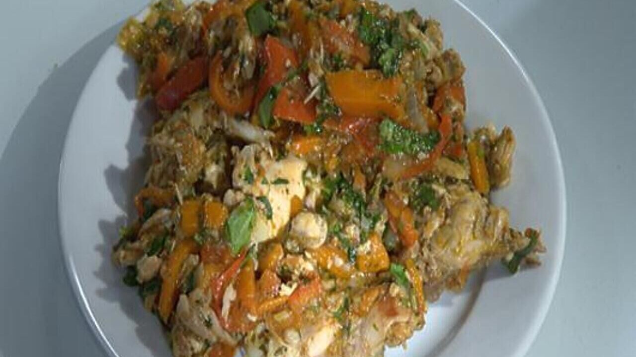 На 4 порции: 1,5 кг курицы, 1 морковь, 3 луковицы, 3 болгарских перца, 5 помидоров, 20 г кинзы, 3 зубчика чеснока, 2 ст.л. хмели-сунели, 3 лавровых листа, соль, перец.