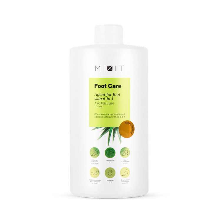 Отличная новинка вышла у Mixit — средство для ороговевшей кожи на нога× 6-в−1 Foot Care Agent, направленное на эффективную борьбу с сухими мозолями и трещинами. Оно мгновенно размягчает верхний ороговевший слой кожи, устраняет сухие и грубые участки, интенсивно восстанавливает, увлажняет, обеспечивает гладкость и ухоженность ног.