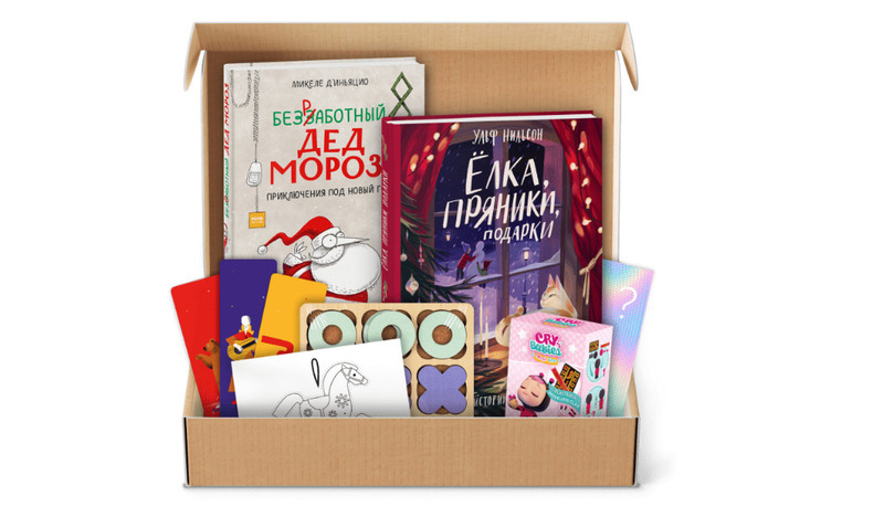 В этой полезной коробочке — две книги о праздничных приключениях: «Безработный Дед Мороз», «Ёлка, пряники, подарки», а также немного мелочи, которая точно поднимет настроение в Новый год и длинные зимние праздники. В комплекте — закладки, карандаши, открытку-игрушку и кое-что еще.