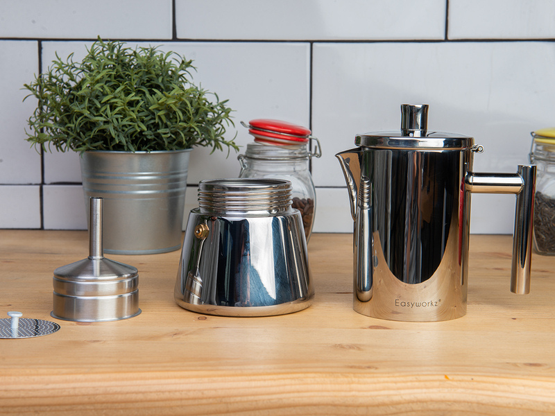 Кофе утром в постель — что может быть романтичнее? Но для того, чтобы ваш возлюбленный, претендующий на звание будущего мужа, смог сварить по-настоящему вкусный эспрессо, просто помогите ему подарком «с намеком». Гейзерная кофеварка премиум класса EazyworkZ от hilZz позволит приготовить ароматный напиток на обычной плите без использования громоздких и дорогостоящих кофемашин буквально за 5 минут.