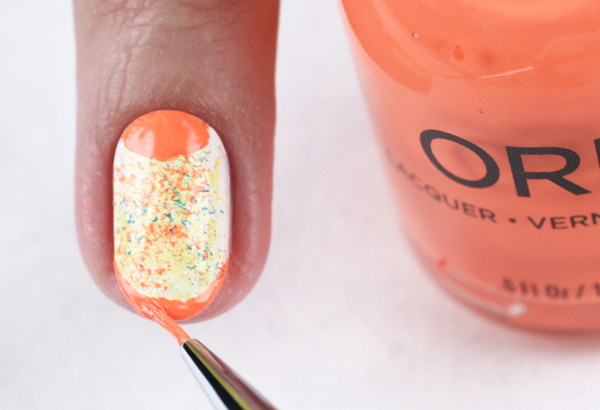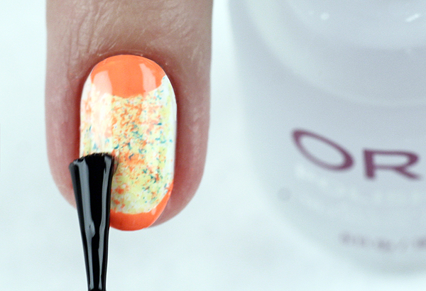 4. С помощью оранжевого лака Summer Sunset и сухой поролоновой губки добавляем яркий акцент в будущий арт.