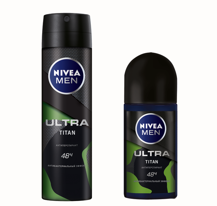 Есть отличные новинки и для мужчин. Эксперты NIVEA MEN разработали формулу нового антиперспиранта линейки ULTRA. Бодрящий ULTRA TITAN с ароматом шалфея и свежего имбиря уверенно работает в течение всего дня, гарантируя надежную ultra-защиту в любых ситуациях. Новинка представлена в двух форматах: шариковый антиперспирант и спрей. Вам нужно просто выбрать тот вариант, который понравится больше.