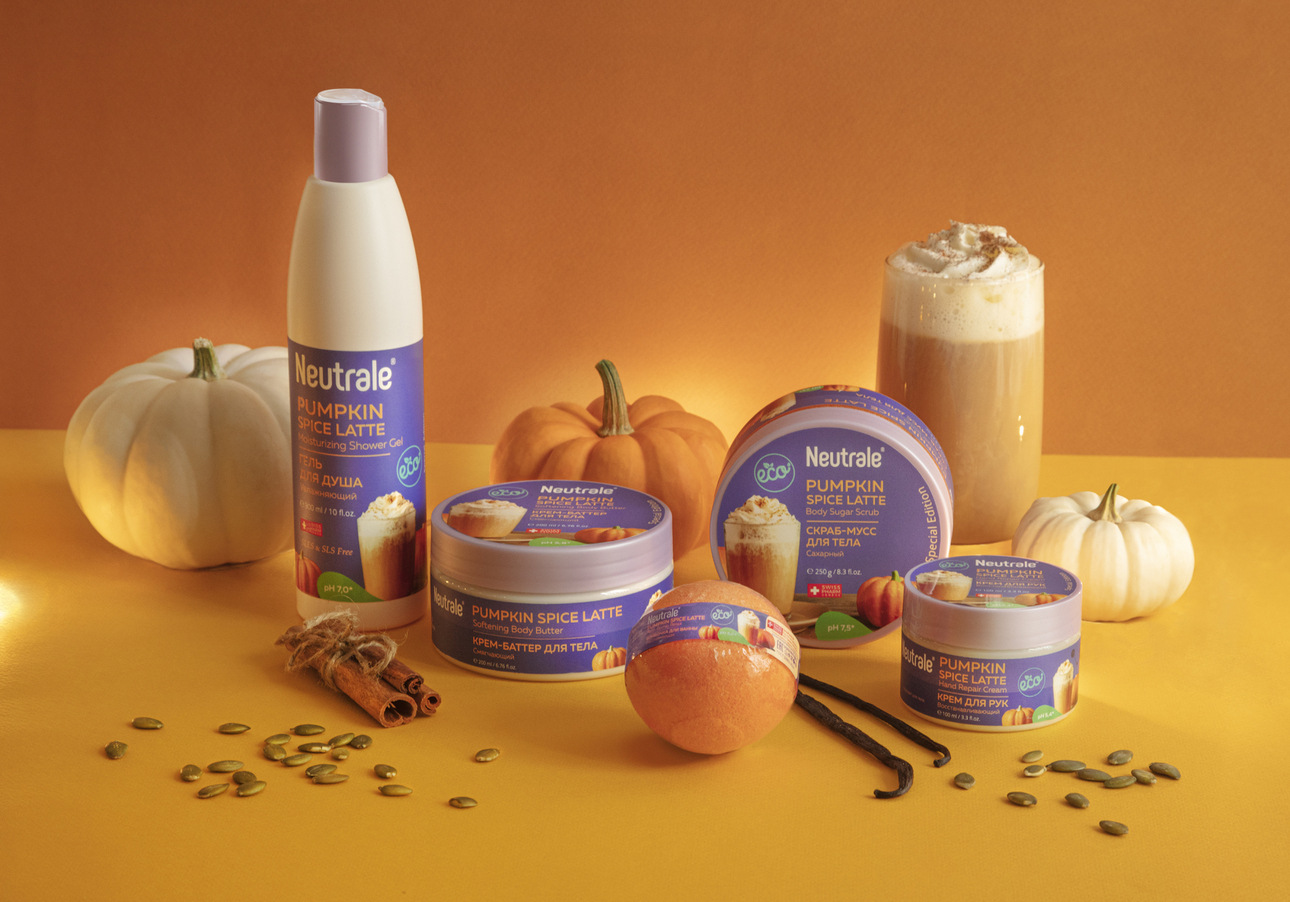 Поскольку на улице все еще холодно, то согреться в февральские будни поможет ароматный латте. И речь в данном случае не о напитке, а о бьюти-средствах из новой серии Pumpkin Spice Latte от швейцарского бренда Neutrale. Это лимитированная коллекция невероятно уютных и согревающих beauty-средств сезона, которая продолжает гастрономический тренд в косметике.