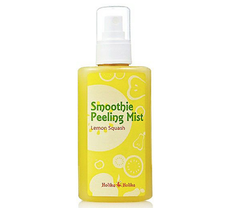 Отшелушивающий мист-скатка «Смузи Пилинг» Smoothie Peeling Mist Lemon Squash корейской марки Holika Holika — именно такое средство. Созданный на основе лимонного сока, пилинг мягко очищает кожу от ороговевших частиц и обогащает кожу кислородом, параллельно осветляя черные точки, следы постакне. Продукт очень прост в применении: нужно распылить спрей на лицо, подождать несколько секунд, а потом просто начать скатывать его. Даже после первого применения заметен эффект — будто вы побывали у профессионального косметолога. Причем если продолжать использовать пилинг пару раз в неделю, то скоро рельеф кожи заметно выранивается, улучшается цвет лица, а морщины становятся менее заметными.