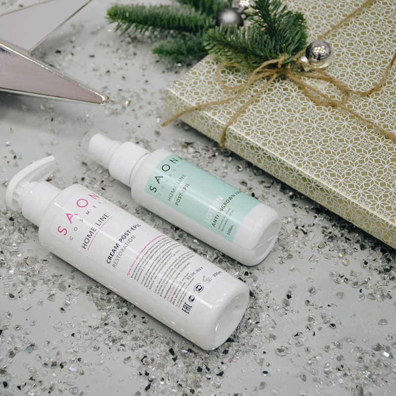 А в наборе «Совершенная кожа» вы найдете восстанавливающий крем для тела после депиляции с пантенолом из линии Home и лосьон против вросших волос для домашнего использования из линии Home.