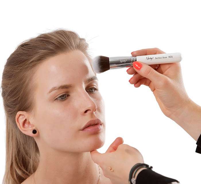 Вам понадобится плоская кисть с синтетическим ворсом, так как большинство тональных средств имеют жидкую или кремовую основу. При этом ворсинки на кисти обязательно разной длины.