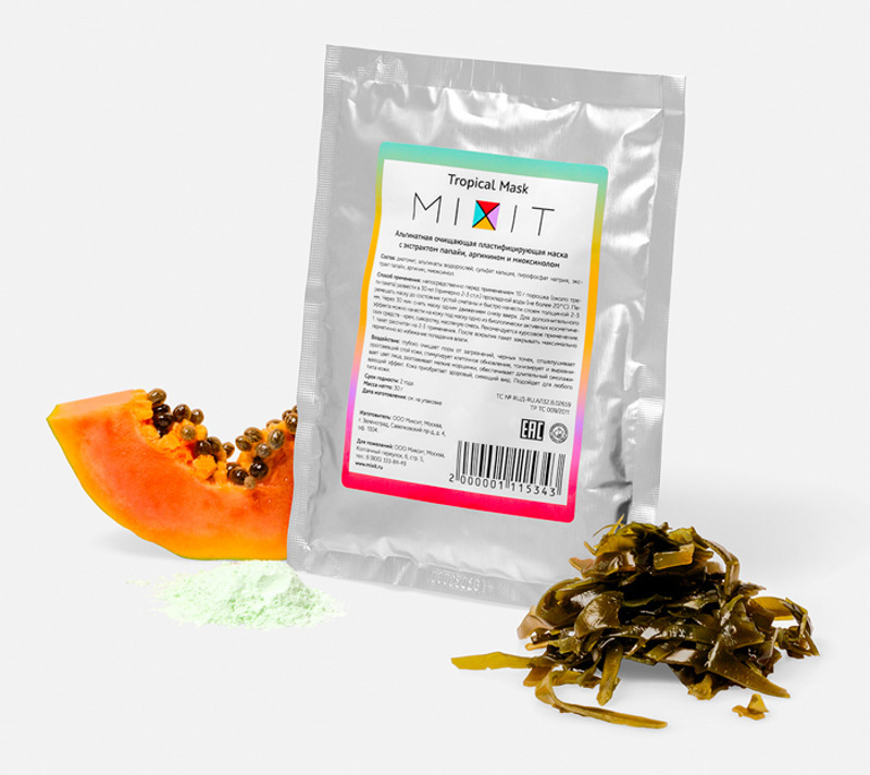 Очищающая альгинатная маска Tropical Mask от MIXIT глубоко очищает поры от загрязнений, черных точек, отшелушивает ороговевший слой кожи, стимулирует клеточное обновление, тонизирует и выравнивает цвет лица, разглаживает мелкие морщинки, обеспечивает длительный омолаживающий эффект. Кожа приобретает здоровый, сияющий вид.