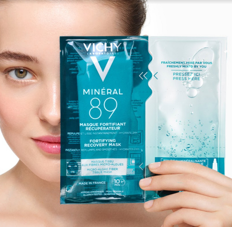 Экспресс-маска на тканевой основе из микроводорослей для интенсивного увлажнения и укрепления барьера кожи MINÉRAL 89 от VICHY имеет в своем составе гиалуроновую кислоту двух видов. Низкомолекулярная кислота проникает в глубокие слои эпидермиса и увлажняет кожу. Высокомолекулярная кислота удерживает влагу в коже, препятствуя ее транэпидермальной потере. Термальная вода VICHY (как же без нее?) стимулирует естественные барьерные функции кожи, ну а тканевая основа из микроводорослей помогает активным компонентам работать слаженно и эффективно.