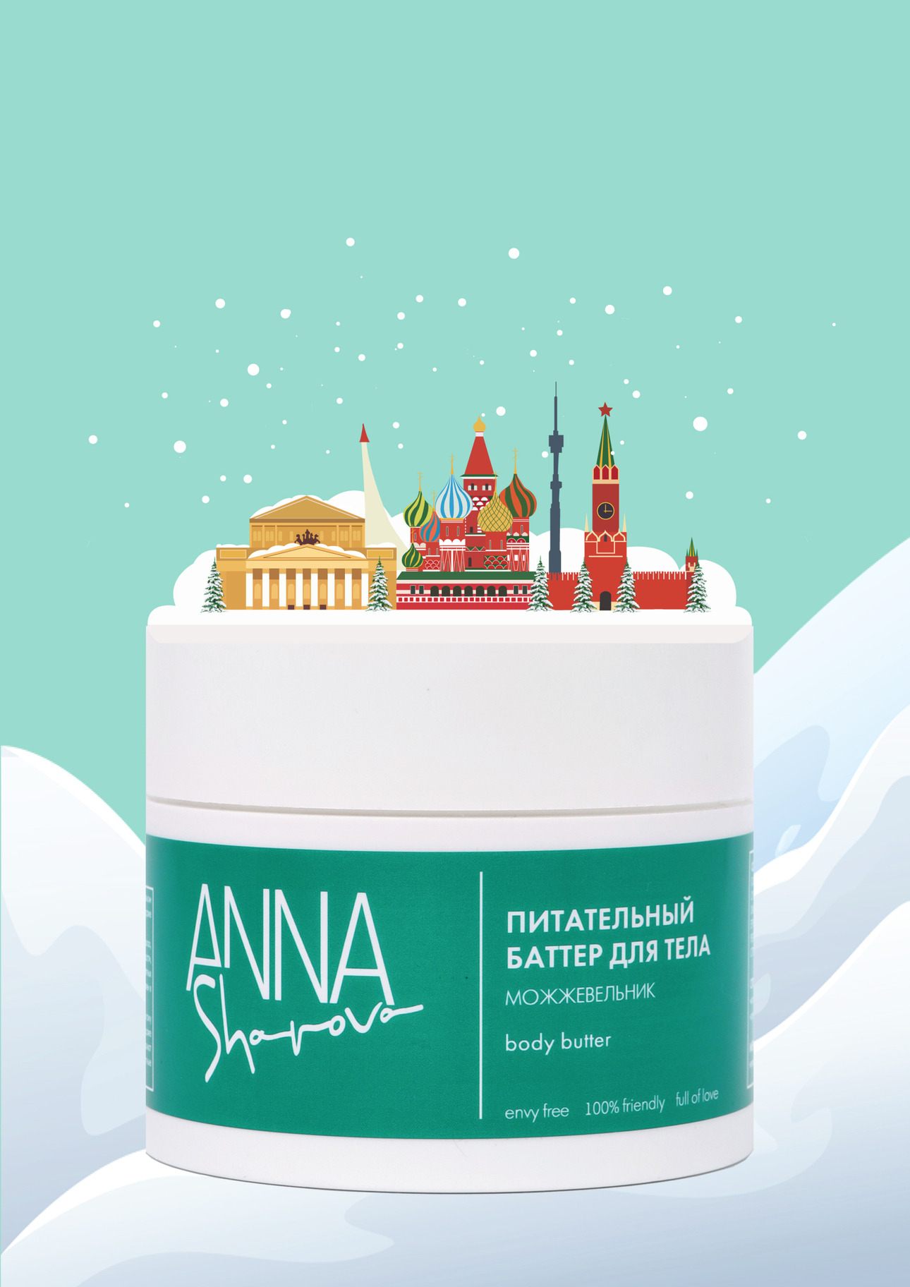 Основатель бренда ANNA SHAROVA Анна Шарова по образованию — косметический химик-технолог. Поэтому при разработке этого баттера она учитывала погодные условия, характерные для русской зимы, затяжной, снежной и морозной. Высокие проценты ввода карнаубского воска, масел ши, какао, кокоса, сквалана, витамина Е питают и увлажняют кожу, делают ее нежной и шелковистой. Можжевельник раскрывается в насыщенном, освежающем зимнем аромате с древесными, смолистыми нотами. Аромат можжевельника, как прогулка по заснеженному лесу, дарит безмятежное ощущение в ожидании Нового года.