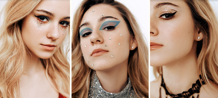 На новогодней вечеринке можно забыть обо всех запретах. Стразы не на платье, а на лице? Почему бы нет? «Я обожаю яркие образы, это касается и макияжа, тем более на новогоднюю вечеринку» — говорит Марго. А визажист Вика Вакулюк помогает создать крутой креативный мейк.