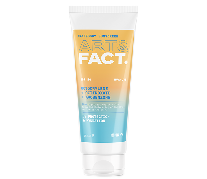 К таким относится Солнцезащитный крем всех типов кожи с химическими фильтрами Octocrylene + Octinoxate + Avobenzone. Face&body sunscreen SPF 50 от ART&FACT. А еще он содержит комплекс современных химических солнцезащитных фильтров, которые препятствуют повреждению кожи UV-лучами — защита от UVB- и UVA-лучей. Ну а активные компоненты в составе крема защищают кожу от ожогов и фотостарения, обладают антиоксидантными и увлажняющими свойствами.