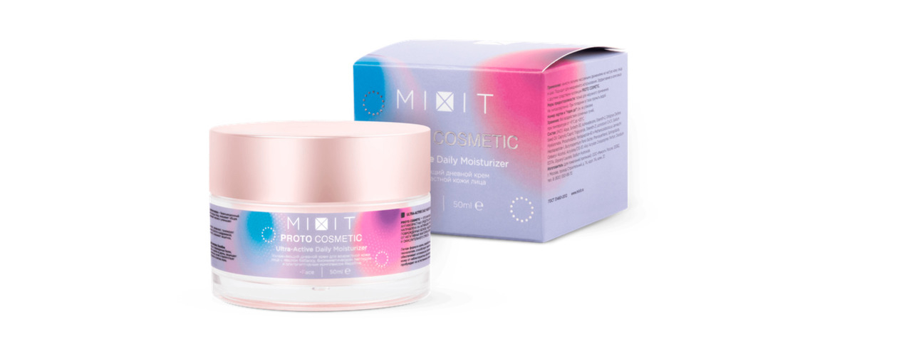 Для увлажнения выбирайте средства с гиалуроновой кислотой в составе. Это очень мощный компонент, удерживающий влагу как на поверхности, так и в глубоких слоях кожи, обеспечивает упругость и эластичность кожи. ГК — основной ингредиент в составе Увлажняющего дневного крема для возрастной кожи лица 30+ от MIXIT. Он работает в тесной связке с омолаживающим олигопептидным комплекс Recelline, который отвечает за очищение, утилизацию токсинов и шлаков из дермы, защиту от вредного воздействия солнечных лучей.