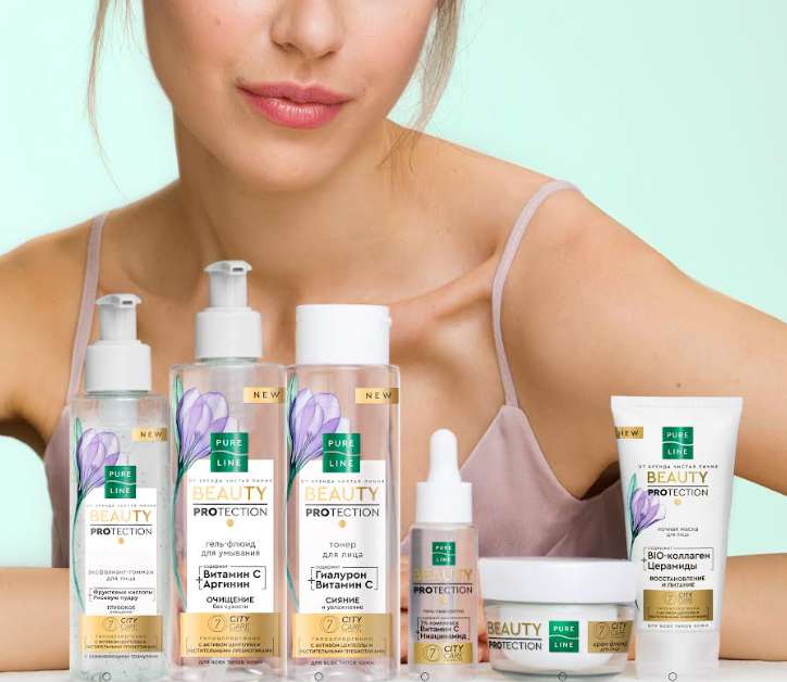 Новая линейка Pure LineBeauty Protection для ежедневного ухода за кожей лица как раз способствует защите кожи от влияния вредных факторов городской среды, в том числе от свободных радикалов — молекул с неспаренными электронами, которые повреждают защитные барьеры кожи, разрушают липиды и коллаген. Коллекция включает в себя гель-флюид для умывания, эксфолиант-гоммаж для глубокого очищения, тонер и ночную маску для всех типов кожи, флюид-сыворотку и крем-мусс для сухой и чувствительной, гель сыворотку и крем-флюид для жирной и комбинированной. Продукты серии Pure Line Beauty Protection за счет комплекса из семи компонентов оказывают на кожу лица семь преображающих эффектов: сияние, уменьшение раздражения, комфорт, баланс микробиома, сохранение упругости, восстановление, дополнительное увлажнение.