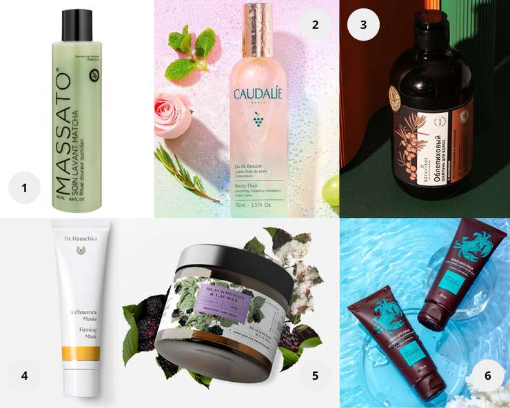 1. Натуральный органический и 100% веганский шампунь с матчей, Massato. 2. Вода для красоты лица, Caudalie (100% ингредиентов натурального происхождения). 3. Облепиховый шампунь для волос с инулином. Восстановление и укрепление, Botavikos 4. Укрепляющая маска для лица, Dr. Hauschka. 5. Питательный восстанавливающий крем для рук, с мочевиной и пантенолом с мощным увлажняющим эффектом Ежевика&Лавр, Pravilnaya Kosmetika. 6. Крем для жирной и проблемной кожи с цинком и хитозаном, HydroBionique.