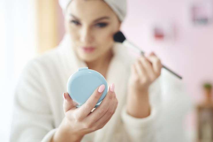 «Наносите пудру пушистой кистью только на зоны, где это необходимо: обычно это лоб, нос и подбородок. Щеки и область под глазами лучше оставить более „живыми“„, — акцентирует внимание эксперт.
