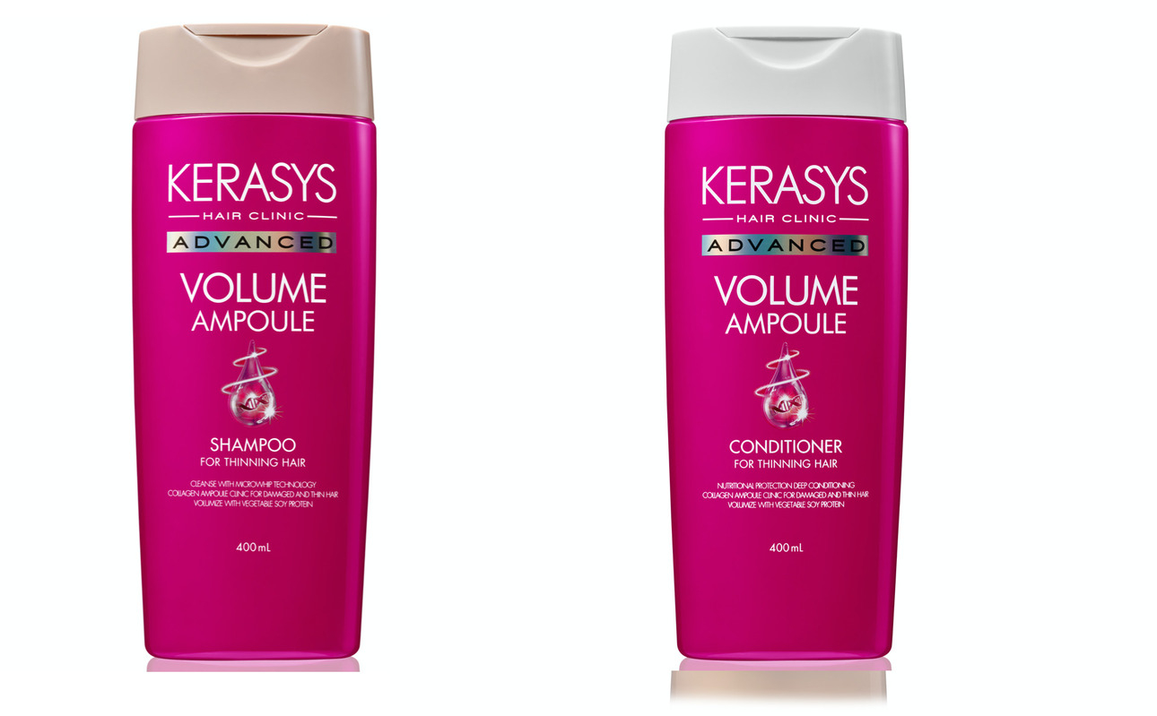 Для придания объема тонким и слабым волосам подойдут шампунь и кондиционер Kerasys Advanced Volume. Помимо коллагеновых ампул, средства содержат натуральный соевый протеин, который делает волосы эластичными.