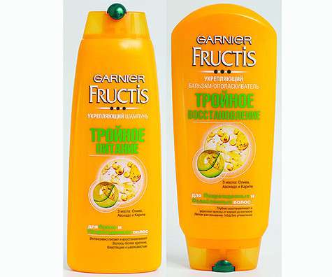 Укрепляющий шампунь и бальзам-ополаскиватель «Тройное восстановление» от Garnier Fructis