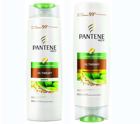 Шампунь и бальзам-ополаскиватель Pantene Pro-V Слияние с природой OIL THERAPY. Шампунь сочетает технологии Pro-V с питательным маслом для восстановления поврежденных волос. В комплексе с активными веществами экстракт кассии способствует тому, чтобы увлажняющие ингредиенты достигли всей поверхности волос.