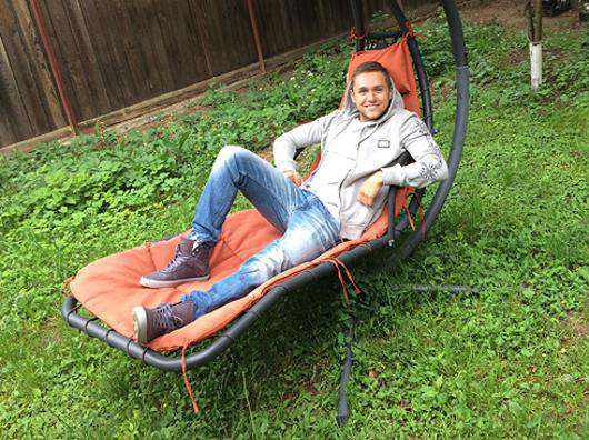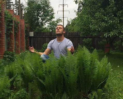 Прогуливаясь по тропинкам рядом с домом, мы добрались до гамака, спрятанного в глубинке деревьев, на котором любит расслабляться Влад. Правда, сегодня на нем порелаксировать не удалось — гамак обвалился, едва артист успел на него присесть. Пройдя чуть дальше, мы наткнулись на папоротник внушительного размера, за которым ухаживает мама артиста. Присев за растение, Влад начал медитировать. Как выяснилось, папоротник — еще одно удачное место для того, чтобы остаться наедине с собой, что так необходимо творческому человеку.